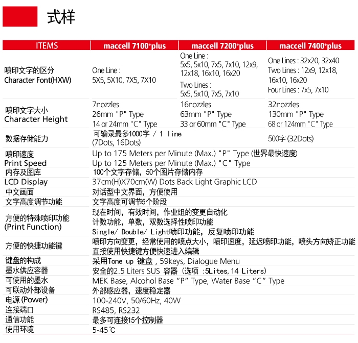 maccell Technology 系列产品 series LP7000+plus ink jet controller 具有很强的生产线适应能力。方便于使用者的设计越来越适合无人自动化流水线。多种语言支持和简易的操作界面。